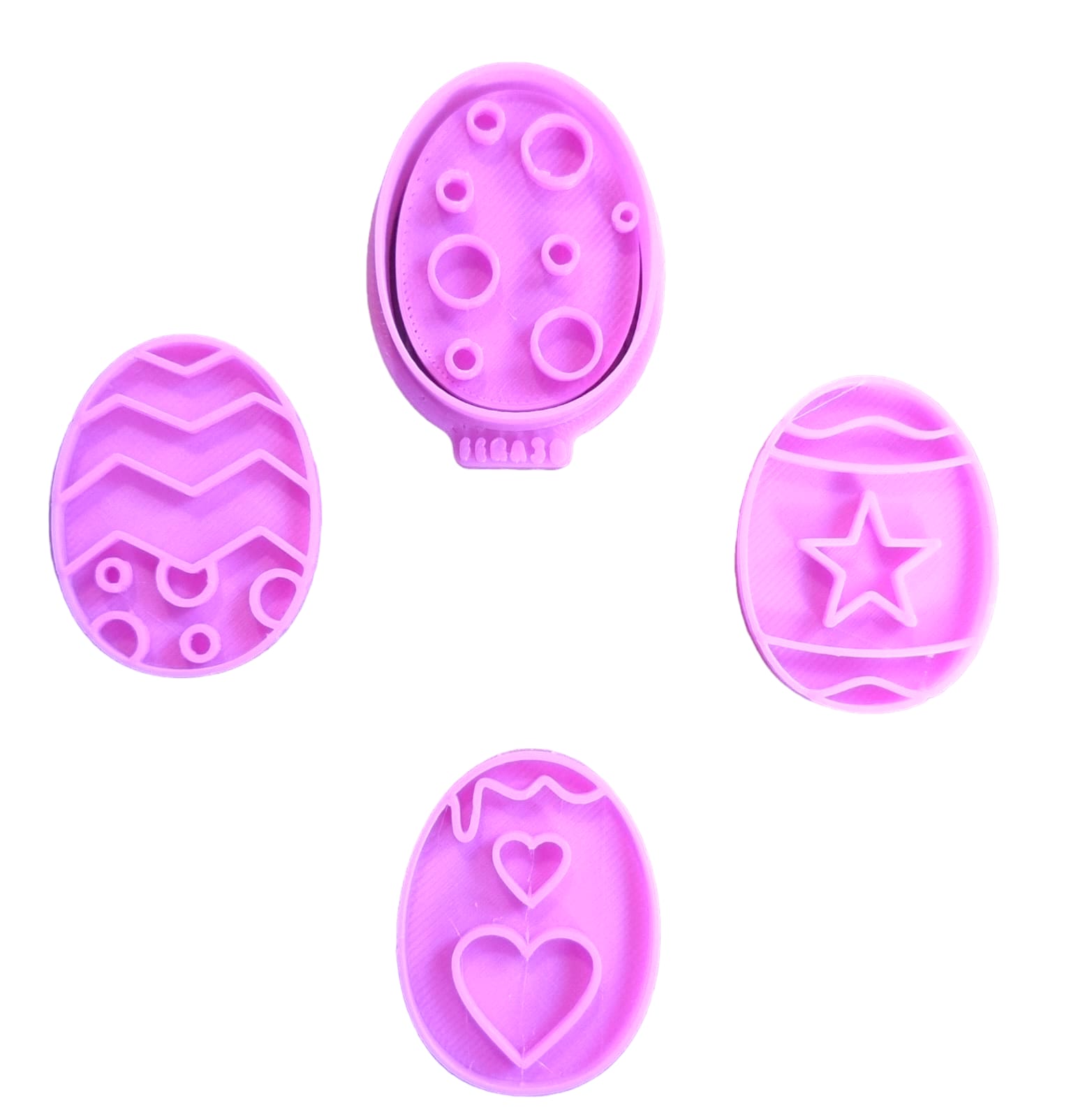 Kit completo: 1 Cortador e 4 marcadores (Ovo Estile, Ovo dois corações, Ovo bolhas e Ovo estrela).